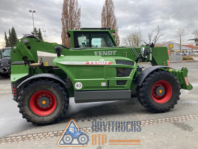 Fendt Cargo T955 : Pré-séparateur pour filtre à air Ventilateur réversible Version 40 km/h Homologation selon le StVZO 40km/h Dispositif de conduite lente Huile hydraulique standard Soupape supplémentaire 1 dw Tête de flèche 3ème circuit de travail hydraulique sur la tête de la flèche Fonction permanente Soupape supplémentaire 1 Peinture Nature Green – Jantes Terra Red Siège confort à suspension pneumatique Climatisation Gyrophare à gauche Commande de l’élévateur de cabine sur l’accoudoir Pack caméra Phares LED bras de base – 2 pièces Radio avec MP3 et Bluetooth Grille de protection FOPS Lanterneau (niveau 1) Store pare-soleil pare-brise Essuie-glace et lave-glace arrière Attelage de manœuvre 3 to Système de graissage centralisé automatique Prise 7 pôles arrière, 12 V Dispositif d’échange rapide hydr. pour VO Prise 7 pôles tête de flèche Blocage du vérin de basculement Amortissement de la flèche Racleur de saletés Bras télescopique 500/70R24