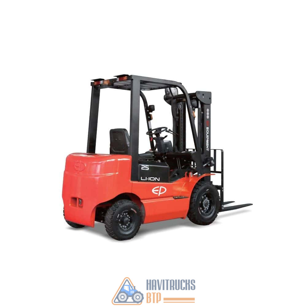 Ce chariot élévateur électrique convient à un usage intérieur et extérieur, même sur des routes inégales ou sous la pluie, grâce à ses grandes roues et à sa conception étanche, ce qui en fait un outil parfait pour les industries des boissons, de la logistique et de la construction. Vitesse de déplacement jusqu’à 12 km/h Ce matériel nécessite l’obtention du CACES R489 Catégorie 3. Capacité de charge2500 kg Centre de gravité de la charge500 mm Hauteur de levage3000 mm Batterie80V / 205Ah Chargeur65A Longueur totale3573 mm Largeur totale1154 mm Vitesse max12 km/h Type de batterieLithium-Ion Disponible sur commande Paiement 100% sécurisé Livraison rapide Disponible sur commande