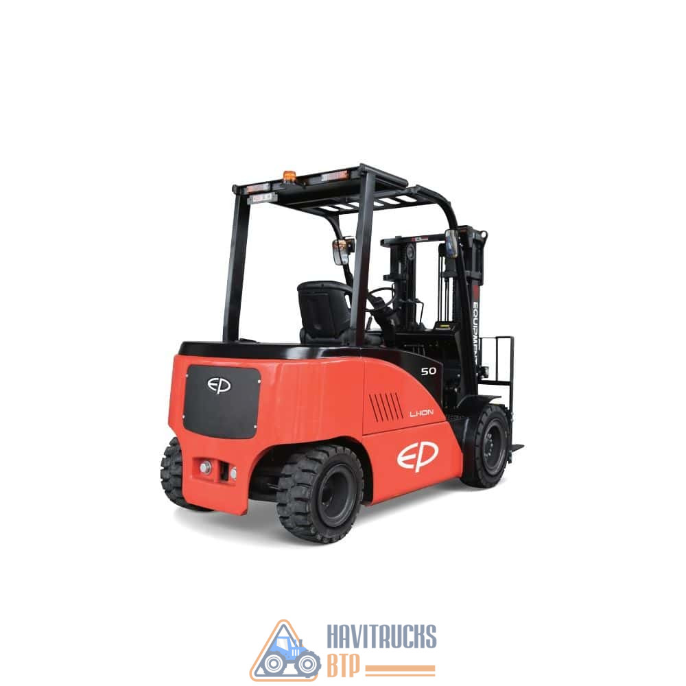 Ce chariot élévateur à contrepoids d’EP Equipment est un chariot élévateur Li-Ion avec une plus grande capacité de charge de 5,0 tonnes. Les avantages de la technologie Li-Ion donnent la priorité au choix des chariots plutôt que des chariots élévateurs Ithermiques. Ce modèle peut être chargé rapidement. Ce chariot électrique est idéal pour des charges lourdes (5t), en particulier dans l’industrie métallurgique et les matériaux de construction. Ce matériel nécessite l’obtention du CACES R489 Catégorie 3. Capacité de charge5000 kg Hauteur de levage3000 mm Centre de gravité de la charge500 mm Poids total7348 kg Batterie80V / 540Ah Chargeur200A Longueur totale4127 mm Largeur totale1600 mm Dimensions des fourches1070 mm EnergieÉlectrique Vitesse max14.5 km/h Disponible sur commande Paiement 100% sécurisé Livraison rapide Disponible sur commande