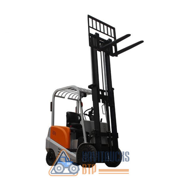 Un signal sonore et visuel est inclus lors de la marche arrière. La conception ergonomique du panneau de commande, le siège à couvercle réglable, les mâts de levage compacts assurent un plus haut degré de confort pour l’opérateur tout au long de l’opération. Détails essentiels Chariot élévateur électrique à quatre roues CPD DESIGN EPURE : le nouveau design réduit le frottement de l’air pour améliorer la vitesse et la sécurité. EXCELLENTES PERFORMANCES : Technologie de contrôle 48V AC et contrôleur SME italien avec système hydraulique industriel avancé, niveau de protection supérieur ou égal à IP4 niveau Q, pour garantir des performances améliorées tout en demandant la consommation d’énergie. Le boîtier de pont de type H à structure compacte améliore l’efficacité de la transmission, réduit le bruit, simplifie la structure et est optimal pour la réalisation de poids léger. Batterie de grande capacité, pour un temps de fonctionnement rallongé. ENTRETIEN ET CONFORT : La conception à couvercle ouvert facilite l’entretien. Retirez le couvercle du contrepoids, remplacez facilement la batterie ; Retirer le couvercle gauche, commande électronique de réparation facile ; Le système d’instrumentation numérique facilite le diagnostic et la réparation. La conception ergonomique du panneau de commande, le siège à couvercle réglable, les mâts de levage compacts assurent un plus haut degré de confort pour l’opérateur tout au long de l’opération.