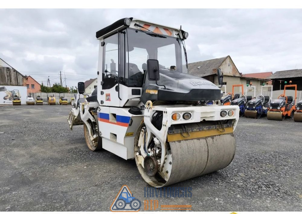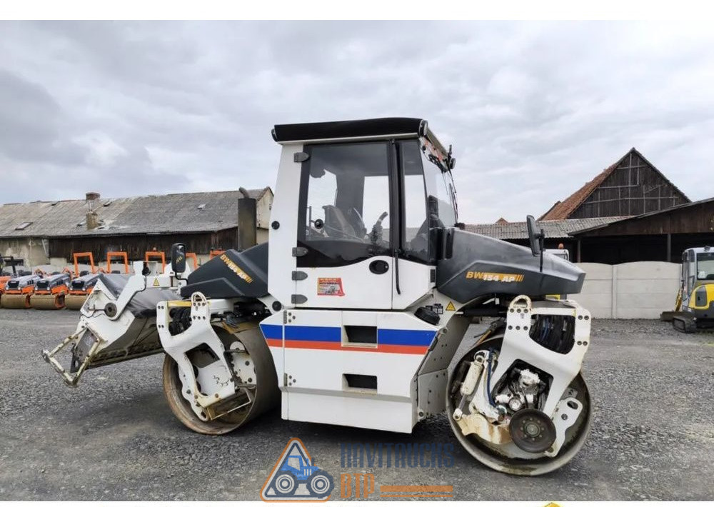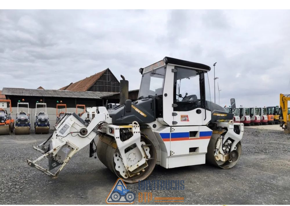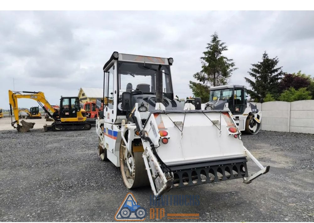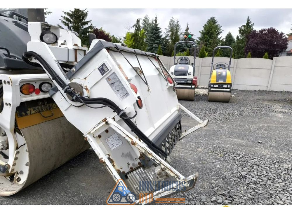 Année de production 2009, Poids 9000 kg. Moteur KUBOTA 55 kw, Kilométrage du rouleau 6390 mth, Cabine complète en option, Cabine chauffée, Siège pivotant et coulissant, Vibration basse et haute, Largeur du tambour 150 cm, Couteaux pour couper l’asphalte. Tambours divisés à l’avant et à l’arrière, Arroseur pour deux tambours, éclairage complet, documents.
