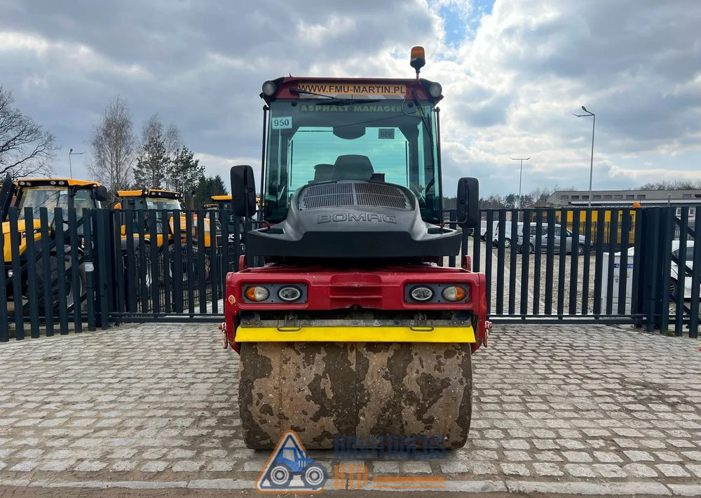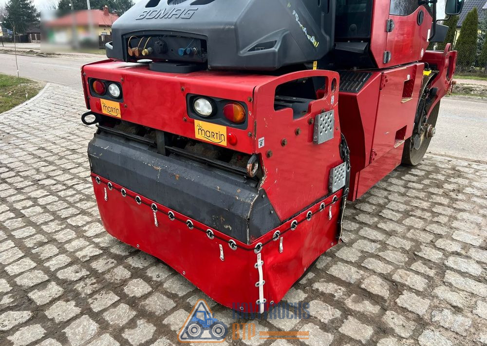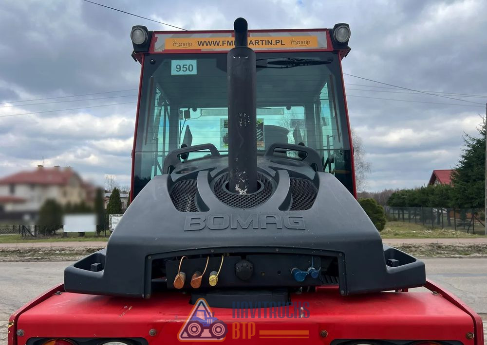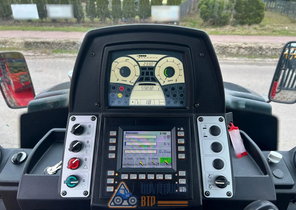 Bomag BW 154 ACP-4 AM Année de production : 2011 Rouleau combiné : caoutchouc-acier Caractéristiques techniques : -Fabricant du moteur : Kubota -Type de moteur : V3307DI-T -Couple maximum tr/min : 1500 tr/min -Nombre de cylindres : 4 -Cylindrée : 3331 l -Couple maximum : 268 Nm -Vibrations : D -Conduite : A -Conduite : KL -Vitesse de déplacement : 12 km/h -Fréquence de vibration : 45 Hz -Largeur du cylindre : 1.5 m -Ø du cylindre : 1,1 m -Charge linéaire statique : 25 kg/cm -Force centrifuge : 119 kN -Série de modèles : BW -Niveau d’émission 3a -Contrôle du compactage -caoutchouc-acier