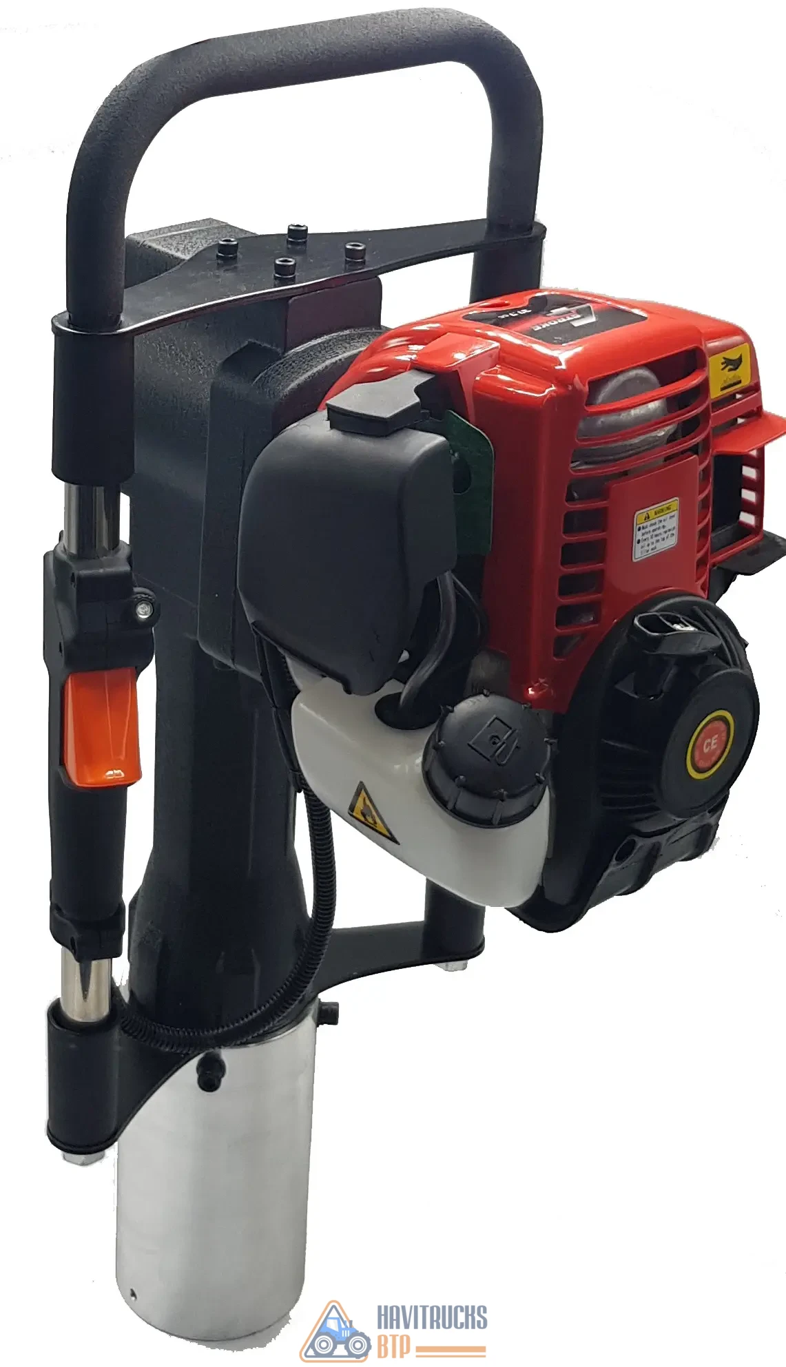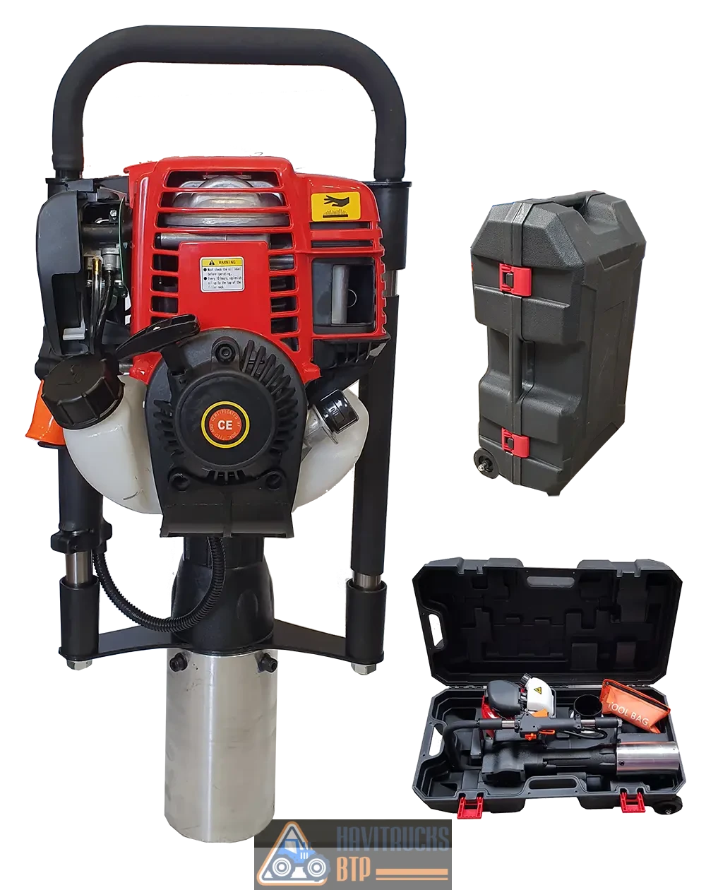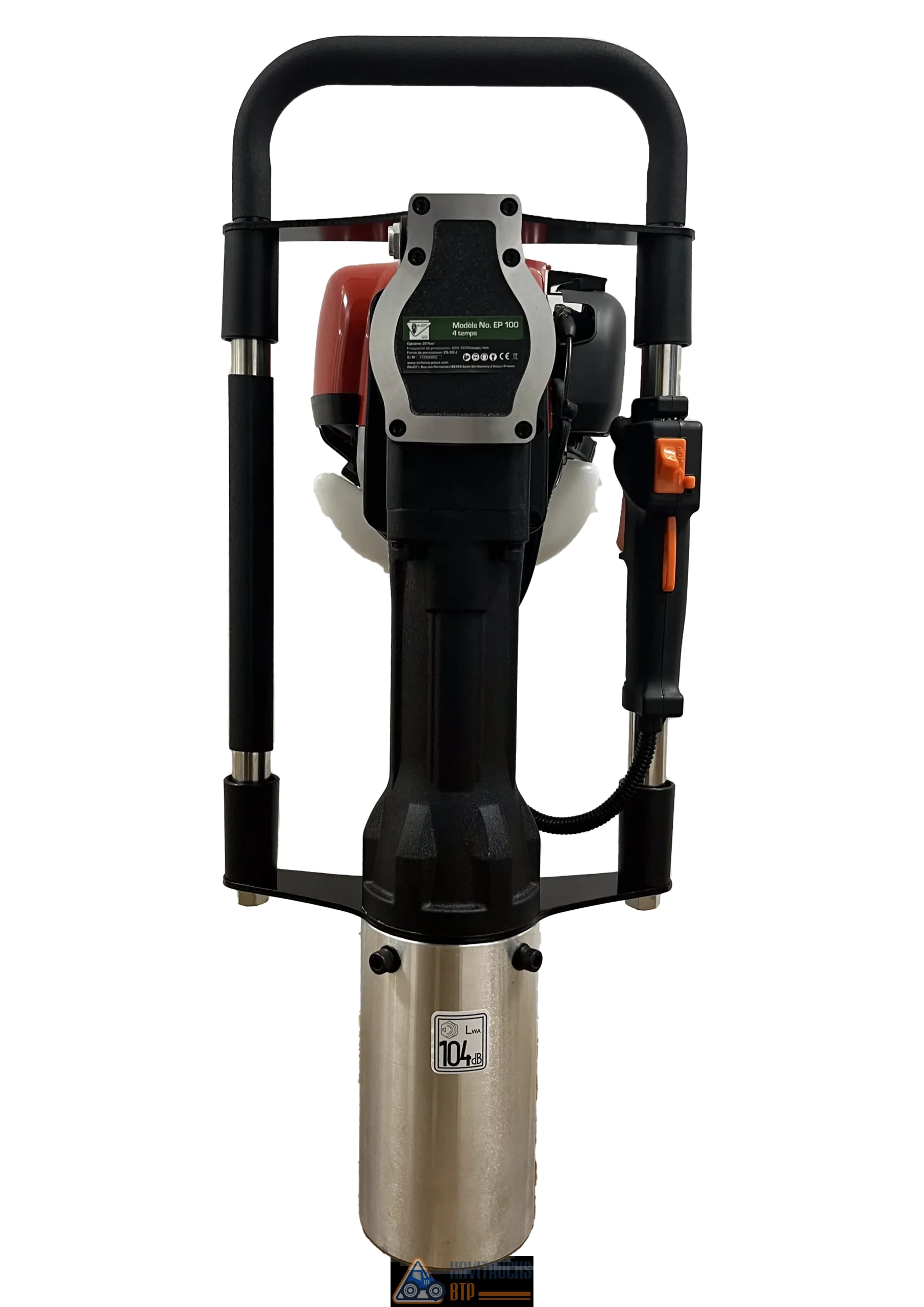 Livré dans une caisse en plastique renforcée sur roulettes avec une réduction en plastique de 80 mm équipé d’une bague de retenue en aluminium. Enfonce-pieux thermique EP100 équipé d’un moteur 4 temps. Enfonce-pieux thermique EP100 avec système d’allumage par aimant à transistor (sans contact). Poids sans caisse de transport : 18,5 kg. Le matériel idéal pour une utilisation ponctuelle par les particuliers. Une utilisation pour une activité professionnelle invalidera la garantie constructeur. Poids avec emballage 25 kg Livraison offerte chez nos distributeurs Produit en stock, livraison rapide