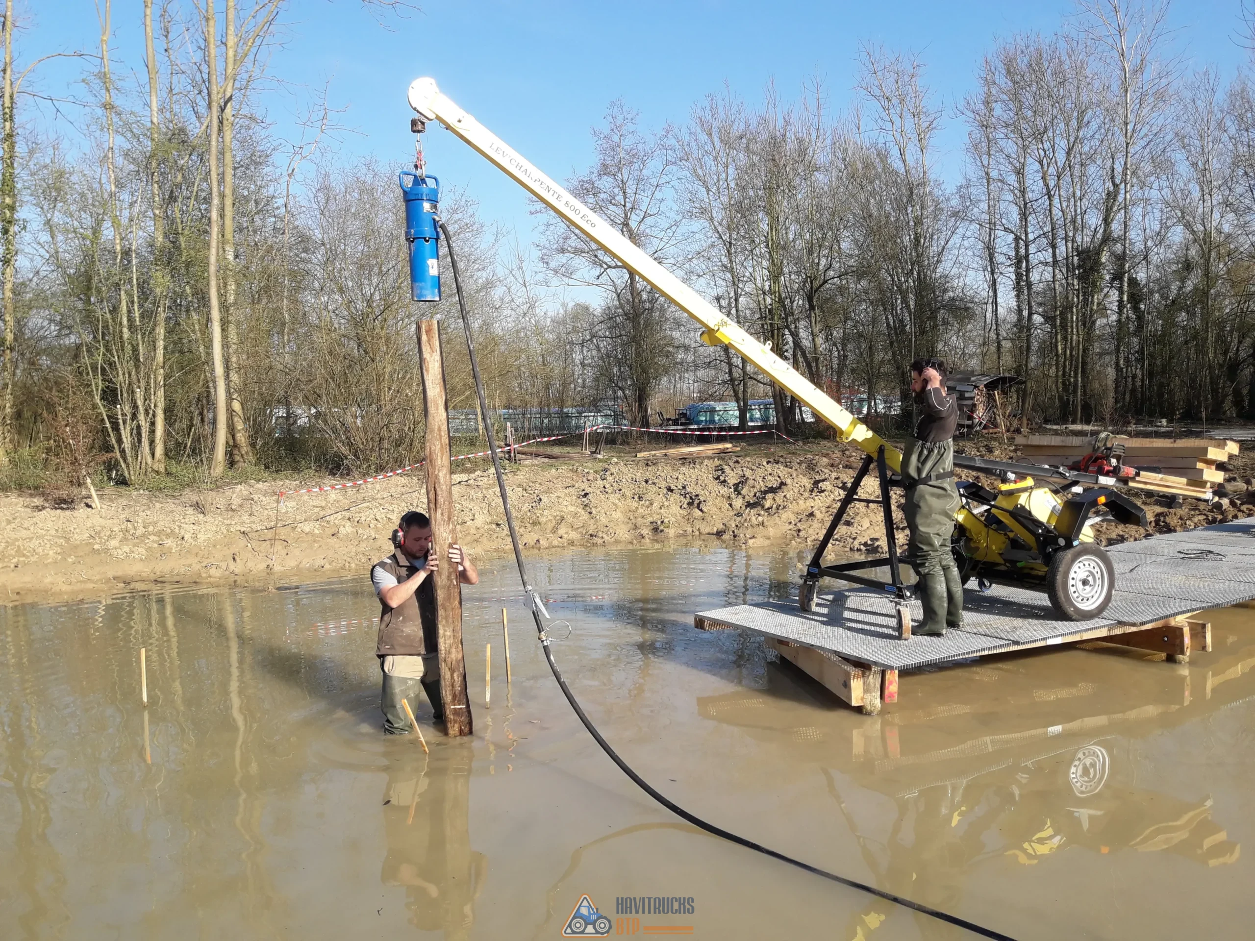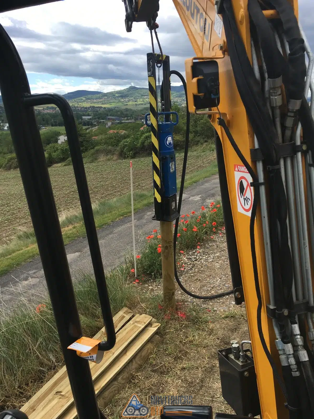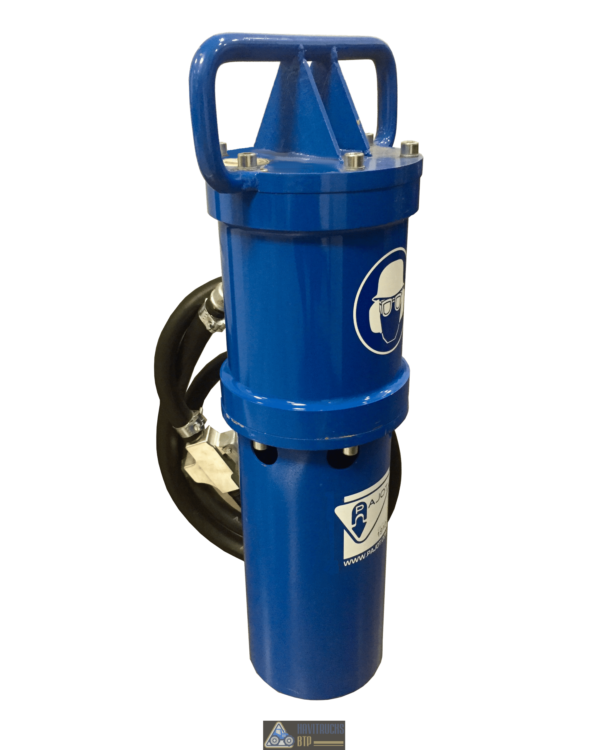 Solution idéale pour enfoncer des pieux ronds jusqu’à 185 mm de diamètre ou pieux carrés de 162 x 162 mm (guide en options). L’enfonce-pieux pneumatique fonctionne avec un compresseur d’air avec un débit entre 1800 et 2000 l/mn et une pression de 8 à 10 bars. Ce matériel est idéal pour battre des pieux bois, piquets et profilés de petites et moyennes dimensions (H, U, I ou C). L’enfonce-pieux est livré avec : 1 anneau de levage 1 flexible de 2 mètres (diamètre intérieur : 19 mm) équipé d’une poignée de commande 1 guide diamètre 125 mm Equipement en acier, peint en bleu Hauteur : 280 mm Diamètre : 200 mm (hors guide) Nombre de coup par minute : 1100 Poids : 50 à 60 kg Poids avec emballage 90 kg