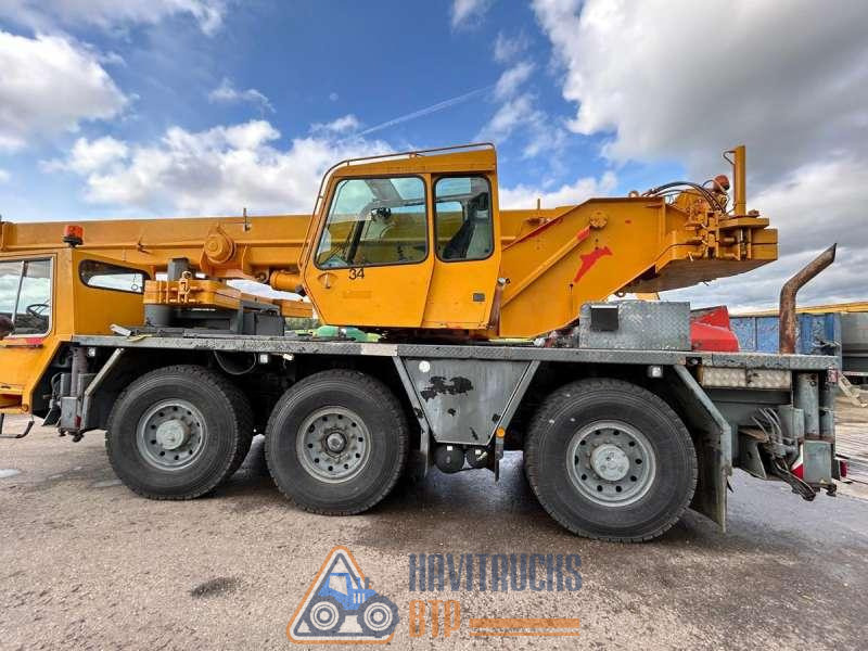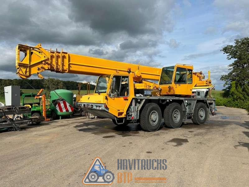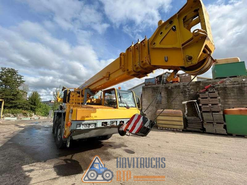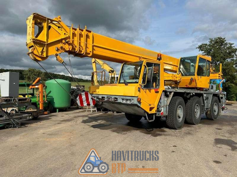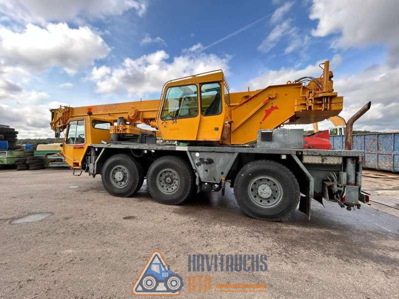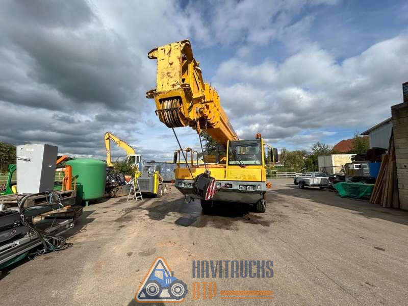 FAUN RTF 40-3 6x6x6 +Jib 15,45m Certificat CE Poids 36.000 kg Année de construction 2000 Heures de service 12.712 Kilométrage 87.950 Moteur Mercedes 213 kW Longueur max. Portée 30 m +Jib 15,54 m Max : 40 ton Vitesse maximale 70 km/h Écoutille de remorquage Pneus 80% Bon état Prêt à l’emploi Quatre roues motrices, BSS, Road Licence