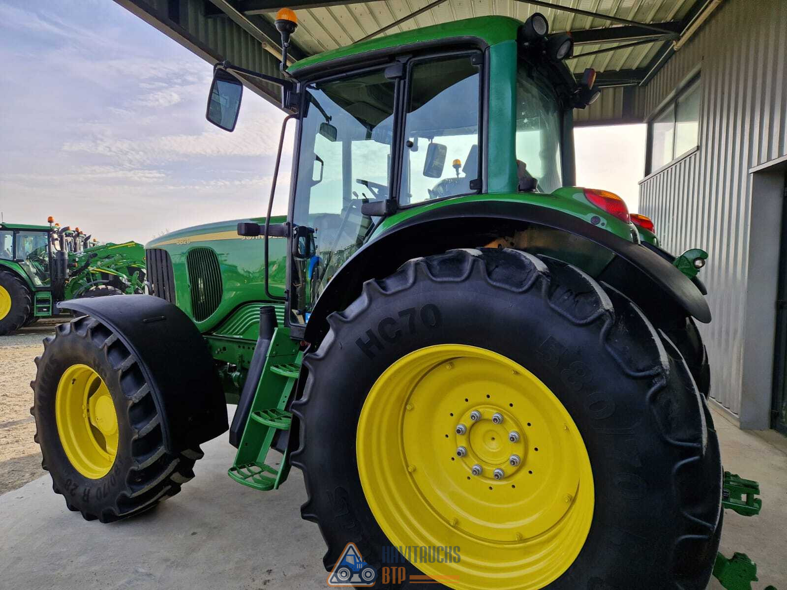 Marque : JOHN DEERE Modèle : 6820 POWER QUAD État : Occasion – Bon état Année : 2004 Heures : 5850 h Puissance : 145 ch Roues motrices : 4 rm Boîte de vitesses : SEMI POWERSHIFT Dimension pneus avant : A480 70 28 Usure pneus avant : 60% Dimension pneus arrière : 580 70 38 Usure pneus arrière : 60%